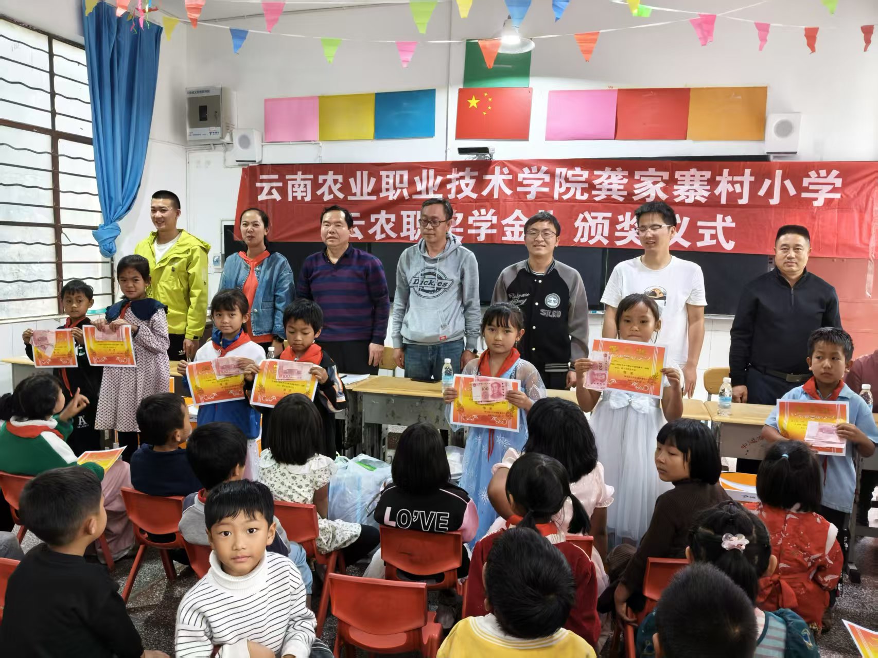 学校为龚家寨小学发放 "云农职奖学金"并开展慰问活动