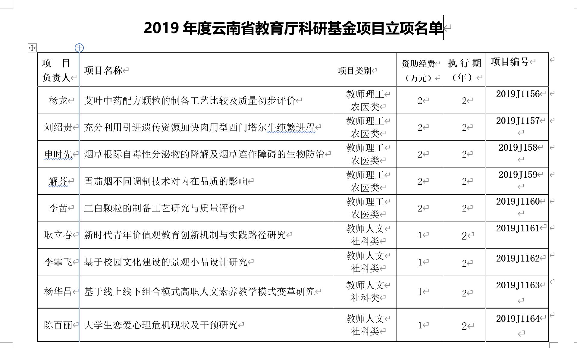2019年度云南省教育厅科研项目立项一览表 h2 >