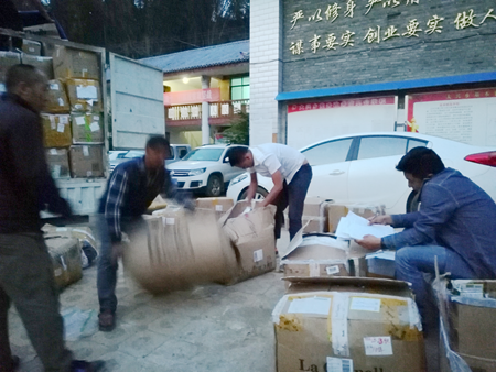 2018年4月6日,江南网页版登录入口官网网址查询 驻村工作队对接运送衣物的大货车后,组织小货车将部分衣物运回龚家寨村,同时通知大兴乡下辖的其他行政村组织发放