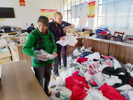 2018年4月7日,江南网页版登录入口官网网址查询 驻村工作队对龚家寨村的衣物进行了盘点,设计了周密的发放方案