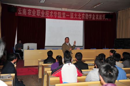 通知中心会议由畜牧兽医系主任赵跃主持并讲话,赵跃主任首先介绍了大北农集团十五年发展壮大为上市公司的成长历程,大北农集团独特而有活力的企业文化,强调人是企业最大的资源;介绍了我院畜牧兽医系与昆明大北农农牧科技有限公司良好的校企合作过程,“大北农班”的同学在校企文化的熏陶训练下,健康愉快地成长、成熟;介绍了大北农助学金资助大学生的目的:以兴学助学为己任。赵主任强调大北农助学金在我院首次发放的意义,就是要资助既贫困又好学的学子顺利完成学业,希望受助学子安心学习,用好成绩回报企业、社会的关爱,学会感恩父母,感恩社会和学校!
