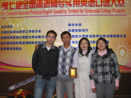 全国实用英语口语大赛对于职业英语教育发展、高职高专英语教学改革、学生实际应用英语的综合能力,特别是口头交际能力等起到了推动与深化作用。每年一次的口语大赛不仅为高职高专学生搭建了一个展示英语风采的绚丽舞台,同时也是对各高校英语教学质量的一次检验。我们将以每年全省的英语口语大赛为契机,虚心向其他高职院校学习,加强联系和交流,不断深化教学改革,为进一步提高我院英语整体教学水平做出不懈努力。