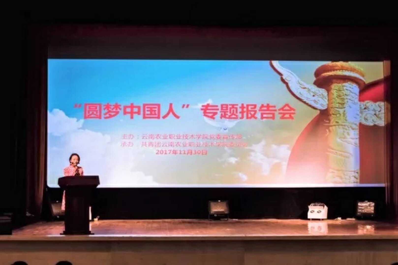 在全党全国掀起学习宣传贯彻党的十九大精神热潮之际,我院于2017年11月30日在小哨校区大礼堂成功举办“圆梦中国人”专题系列报告会。新生代表、团学干部等500余名青年学子聆听了报告会。