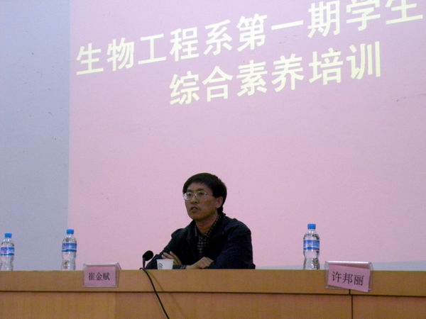 通知中心党委书记崔金赋同志在生物工程系学生干部第一期综合素养培训班开训第一讲