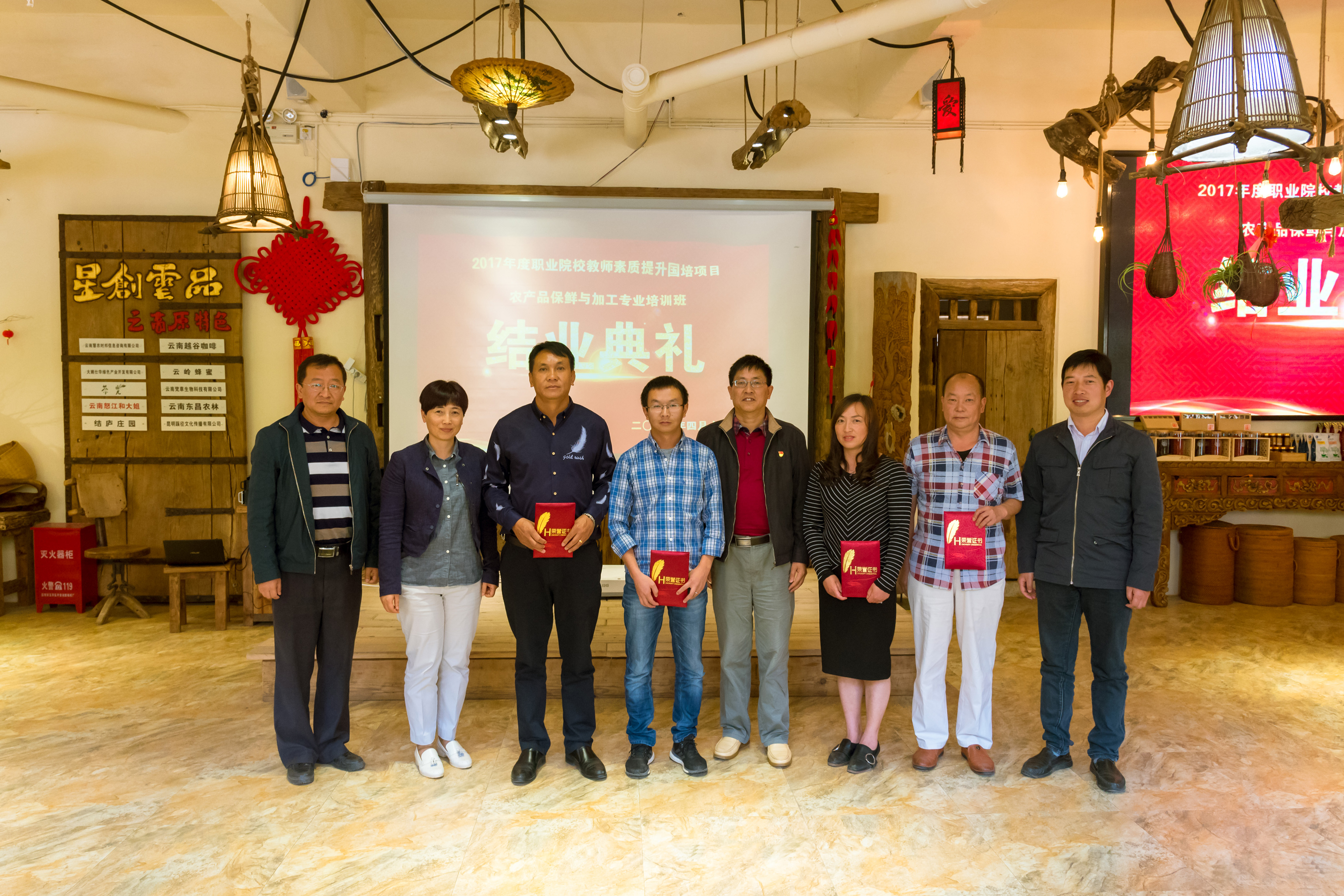 通知中心2018年3月20日—4月17日,在云南省职业教育师资培训中心的精心指导下,我院在云南省农职业教育培训中心举办2017年度全省职业院校教师素质提升国培项目农产品保鲜与加工专业培训班,来自大理、楚雄、保山、丽江、临沧、红河、普洱、西双版纳、怒江等9个州(市)中职学校的23名骨干教师参加了本次培训。为提升培训质量,我院邀请中国农业大学、四川农业大学、江苏农科院、天津科技大学等知名农业院校的专家学者为学员授课,省外师资占比超过60%。通过培训,学员了解掌握了农产品保鲜与加工的国际国内最新理论动态及发展趋势、国际国内先进教学理念方法和云南省高原特色农产品采后处理需要的先进专业技能。在培训中,注重学员实践锻炼,组织学员到昆明云岭广大种禽饲料有限公司等先进的农产品保鲜与加工龙头企业参观学习,增加生产实际经验。
