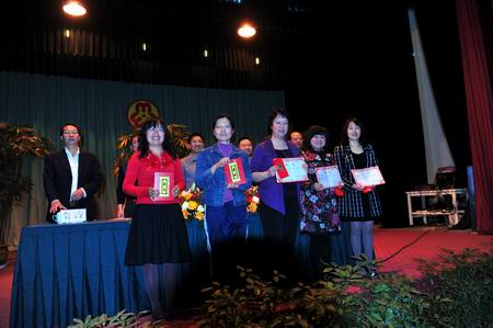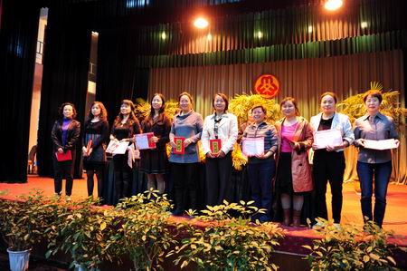 领导给获奖的女教工及幸福家庭进行了颁奖。会后,所有与会女教职工合影留念。