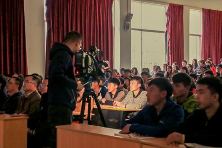 媒体拍摄师生集中观看大会闭幕直播