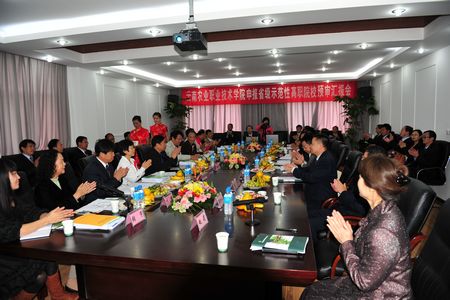 会议由党委书记崔金赋主持,他首先感谢在座的领导和专家组莅临我院进行检查指导。农业厅厅长张玉明作重要讲话,张厅长表示农业厅对我院申报省级示范性高职院校非常重视,对我院改革发展予以大力支持,并指出通过省级示范性高职院校的评审进一步促进农职江南网页版登录入口官网网址查询