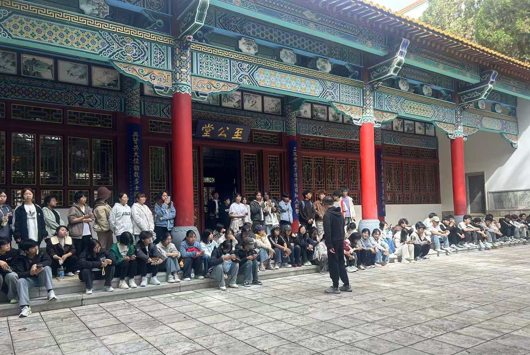 本次研学精心规划了串联1904年至今的校史文化路线:从茭菱校区列队出发,沿云南省图书馆(云南蚕桑学堂旧址)行走,途经云南大学东陆校区(贡院·至公堂)、朱德故居,最终抵达大德寺双塔(省立高中农科班旧址),全程往返10公里,历时3.5小时。四处历史地标如同“校史年轮”,让学生用脚步丈量岁月变迁,在实景中实现历史与现实的对话。以“行走的思政课”,让校史育人入脑入心。这也是我校畜牧兽医专业自1958年迁址小哨后,首次组织新生集体“回归母源”寻根溯源。