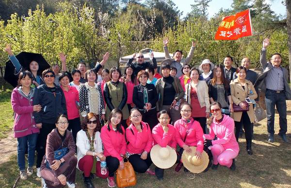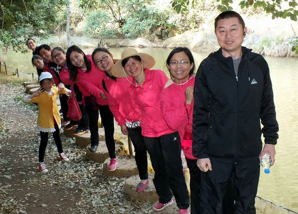 副院长何明东、副院长俞浩及院长助理田应华应邀参加当天活动。畜牧兽医系校企合作单位云南安德利农牧科技公司以及云南傲农科技有限公司应邀加入。早上10点,来自企业的30余人与牧医系40名教师组成浩浩荡荡的队伍向花庄河畔情人谷进发。大地已是一片春意盎然,顺溪谷盘旋而上,一路踏青,一路鸟语花香,一路春风荡漾。