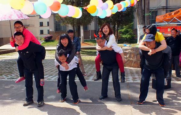 下午两点,“三八妇女节”趣味活动项目火热进行。不管是随机抽取“女神”的快乐背一背,还是随机组队参与的拔河比赛,欢快呼啦圈比赛都无不彰显着牧医系媛女们独特个性和帅男们任劳任怨的绅士风采;欢乐的集体舞将牧医系独特的风采呈现在企业面前,师生共舞、校企联欢、其乐融融。校企篮球赛中,连平时优雅尤显柔弱的女士们也不甘示弱,尽各自力量挖掘自身潜力诠释着团队凝聚力与合作精神,无形中更促进了校企相互之间的了解,增进了友谊。