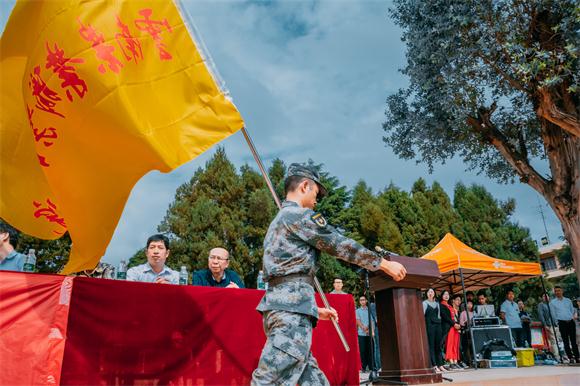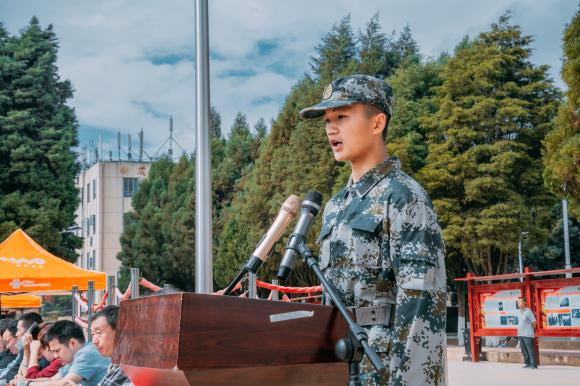 随后,教师代表张梦娟和新生代表分别代表全体教师、2018级全体新生做表态发言;云南省全民国防教育协会学生军训基地杨锡光书记对开展好军训工作的重要意义进行了强调;教官代表陈双凤代表全体教官做表态发言。