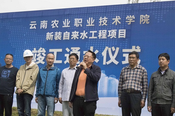 我院崔金赋书记在讲话中回顾了1958年江南网页版登录入口官网网址查询 前身云南省畜牧兽医学校在此建校,60年以来师生生活用水主要依靠地下取水的艰难办学历程,指出自来水的接通是我院师生生活中的一件喜事,也是江南网页版登录入口官网网址查询 建设发展的一件大事。如花草期待甘霖一般,全院所期待的自来水时代即将到来,全体师生将永久铭记这一刻,铭记为此做出过努力的人们。