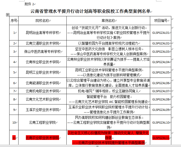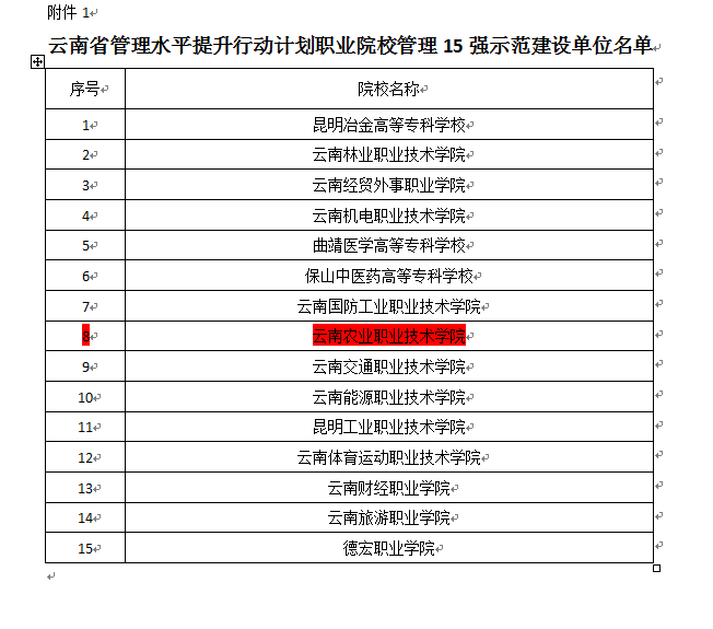 2018年12月18日,按照《云南省教育厅关于开展云南省职业院校管理水平提升行动计划实施总结工作的通知》要求,通过资格审查、网络评审、会议评审及公示等环节,我院被省教育厅遴选为首批省级职业院校管理15强、典型案例30个。希望全院广大师生以此为契机,再接再厉,继续加强学校管理,进一步提高学校管理的规范化、精细化、科学化水平,为把江南网页版登录入口官网网址查询 建设成为面向南亚东南亚的省级优质农职院校做出积极贡献。(党委宣传部)