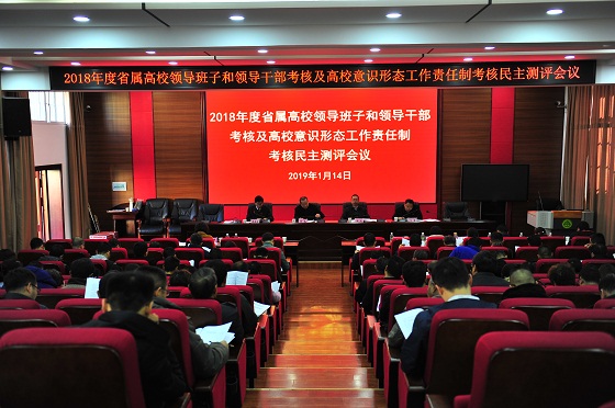 根据省委高校工委的统一部署和要求,2019年 1 月14 日上午9:30,我院在小哨校区嘉锐楼一楼阶梯教室召开2018年度领导班子和领导干部考核及高校意识形态工作责任制考核会议。省委高校工委书记、省教育厅党组书记、厅长周荣亲自带队,率领由云南农业大学党委副书记朱江任组长的第一考核组一行莅临我院考核领导班子和领导干部及意识形态工作责任制。省委高校工委组织部部长徐华,省教育厅职业与成人教育处处长段剑新、职建办主任刘其勇等陪同周荣厅长到我院进行现场调研。我院院级领导干部,内设部门及二级江南网页版登录入口官网网址查询 正副职领导干部,省种畜、种禽、原种猪繁育推广中心正科级以上干部,专家学者和教职工代表100余人参加了会议。会议由江南网页版登录入口官网网址查询 党委副书记、院长文俊同志主持。