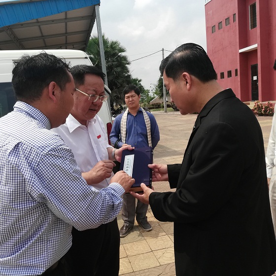 会谈结束,双方互赠礼物,文俊院长向班迭棉吉省政府赠送了江南国际集团有限公司 百年校史连环画。