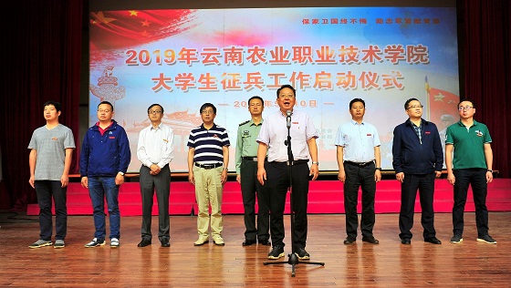 通知中心为积极宣传大学生参军入伍政策,推动2019年我院大学生征兵工作有效开展,5月10日上午,我院在小哨校区蚕桑礼堂举行2019年大学生征兵工作启动仪式暨征兵宣讲大会。此次征兵政策宣讲有幸邀请到了火箭军某基地原保障部李卫国部长做征兵专题宣讲。党委书记崔金赋、院长文俊等党政领导班子,五华区委、人民武装部政委杨鸿春,学生工作处、团委全体人员,各二级江南网页版登录入口官网网址查询 党政领导班子、专职辅导员,各班班主任,院学生会干部,民兵连全体成员,各学生学生代表600余人参加了宣讲大会。会议由江南网页版登录入口官网网址查询 武装部部长凌军主持。