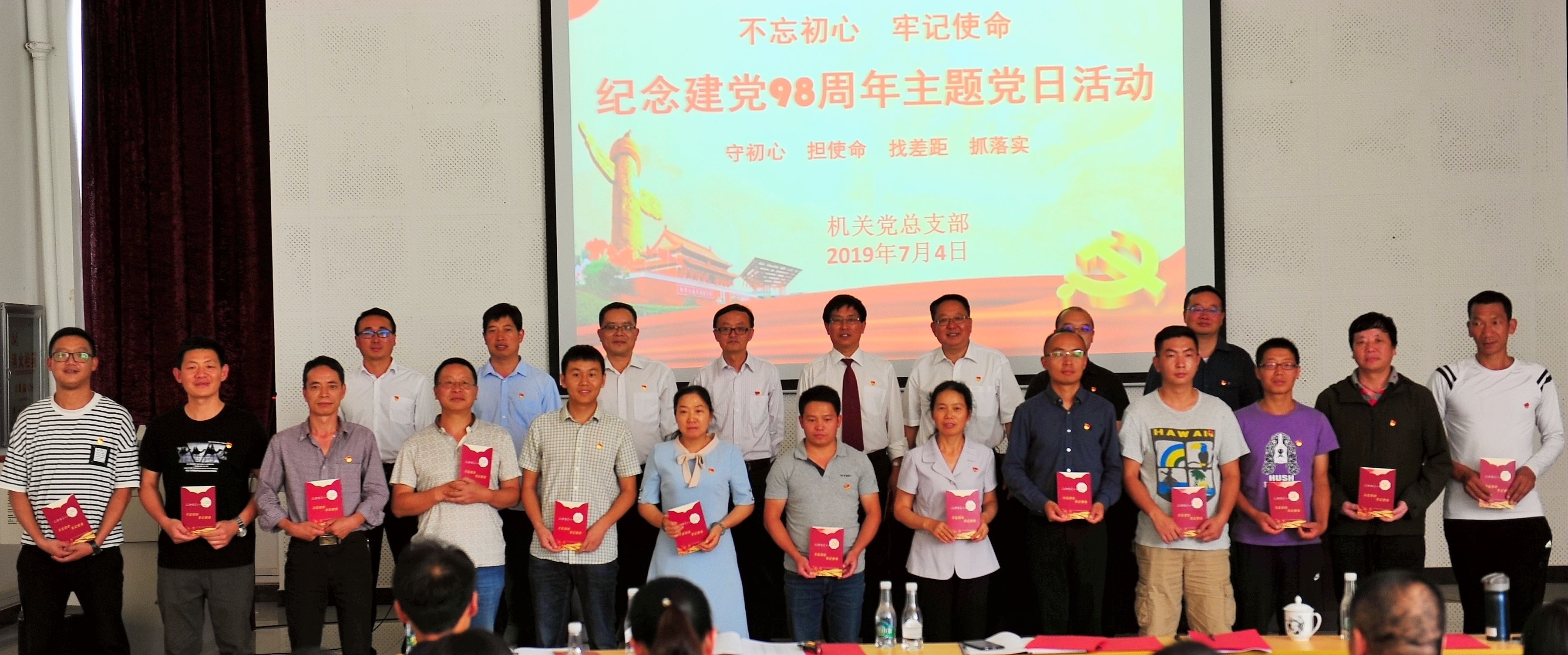 机关党总支共有34名党员在党的生日前后迎来了生命中最重要的日子,主题党日活动中,还为这些同志举行了过“政治生日”活动。党委书记崔金赋同志向过“政治生日”的党员致贺词。他用自己创作的一首《七律.写在七一》勉励党员们回忆入党的初心,进一步强化党员宗旨意识,始终牢记入党誓词,在各项工作中争当先锋,勇当模范。第八党支部蔡文庆同志代表过政治生日的同志许政治生日愿望。随后党委委员为过政治生日的同志们赠送了政治生日贺卡,表达了对同志们的良好祝愿。
