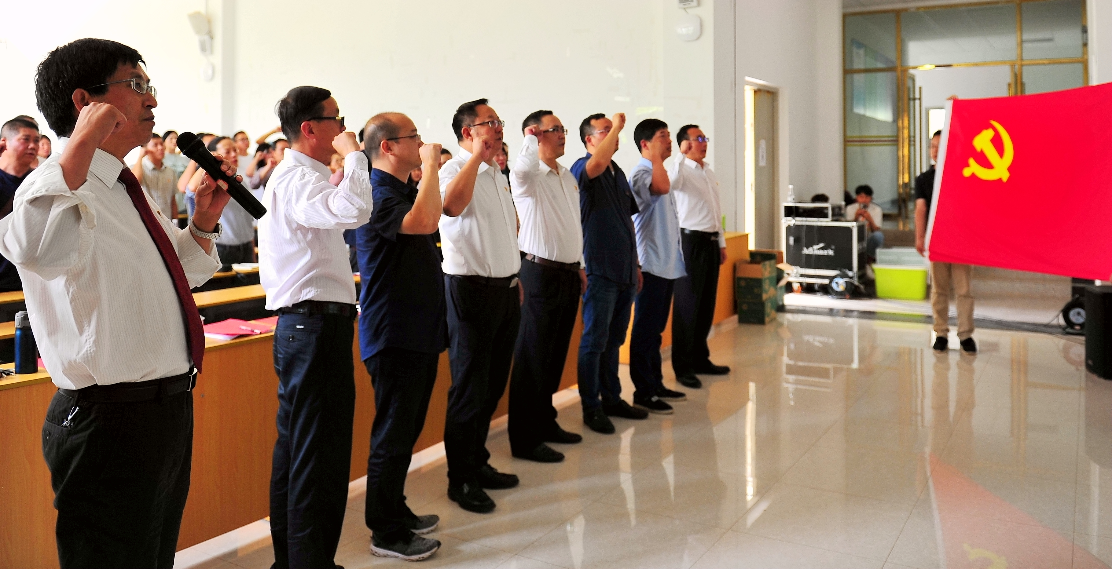在崔金赋书记的带领下,党委班子成员和全体参会党员面向庄严的党旗,重温入党誓词,在铮铮誓言中,共同回忆入党的初心,进一步强化党员宗旨意识,始终牢记入党誓言,激发工作热情和无私奉献的精神。