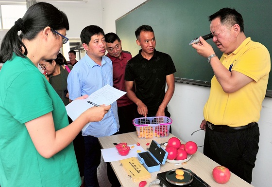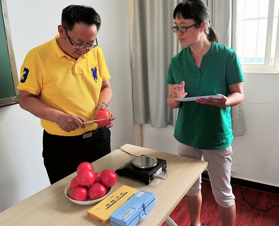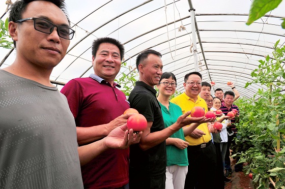 会后,文俊院长、王军明部长、张国建处长、李石友主任与项目组成员共同来到太空蔬菜试验区,对今年种植的太空番茄品种进行实地考察、并测定了相关的试验数据。(江南网页版登录入口官网网址查询 东川太空蔬菜试验示范项目组供稿)