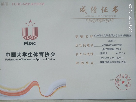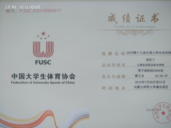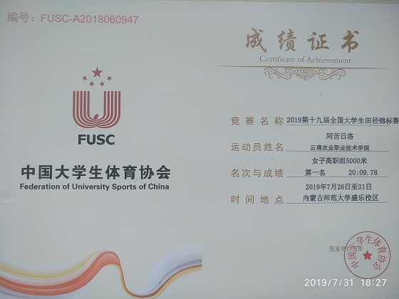 通知中心7月26日—31日,由中国大学生体育协会、中国田径协会共同主办,呼和浩特市人民政府、内蒙古师范大学共同承办的2019第十九届全国大学生田径锦标赛在内蒙古师范大学盛乐校区拉开帷幕。我院田径队经过奋勇拼搏,在髙职髙专组比赛中取得一金一银和两个第五名的好成绩。其中:阿苦日洛同学荣获女子5000金牌和1500米银牌,邱补干同学荣获男子1500米第五名和5000米第五名。