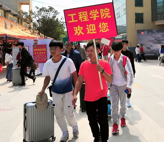 的生机活力与专属农职的温暖扑面而来,为每一位入校新生打开了别样天地。每到一辆接待专用车,那些顶着骄阳、早早举着牌子等在神农大道的学姐学长们均用热情的欢呼迎接新生的到来。大家拿出了十二分的热情,一张张热情的笑脸,一句句亲切的问候,一项项贴心的服务,欢迎着来自各地的芊芊学子。