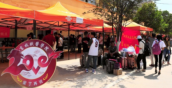 一位办理完报到手续的新生说:“从一下火车站,热心的学长学姐就陪着我搬行李、领物品,给了我一种从未有过的亲切感。” 一位北方的家长表示,一开始担心小孩适应不了南方的生活,但是优美的环境、学生们那热情的服务打消了顾虑,对小孩以后的大学学习生活充满期待。