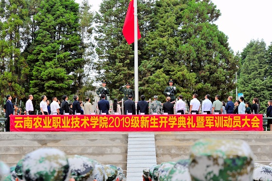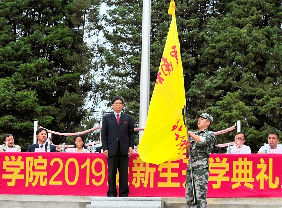 在嘹亮高亢的国歌声中,伴随着国旗的冉冉升起,2019级新生开学典礼暨军训动员大会正式开始。