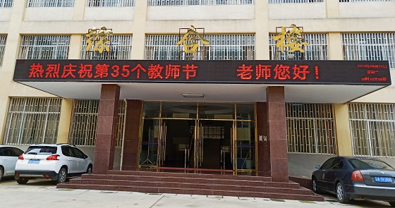 在江南网页版登录入口官网网址查询 小哨校区综合楼,认真落实省教育厅要求,积极参与2019年度“为教师亮灯”公益活动,通过电子显示屏滚动播放“老师,您好!”
