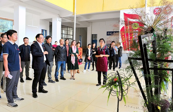 在江南网页版登录入口官网网址查询 小哨校区图书馆一楼大厅举行工匠精神传承观摩活动。由农学与园艺技术江南网页版登录入口官网网址查询 2017级园艺技术专业龙宣、沈朝丽同学现场展示茶艺,申时仙老师带领学生现场展示花艺设计。申时仙老师的花艺设计《筑梦》,利用地球、星星、月亮等星体构架,表达了浩瀚的星空、宇宙与神秘的世界未知领域;花艺依托三角尺、直尺、米达尺、圆规、量角器等测绘工具为载体,表达了人类认知世界,改造自然和探索奥秘的能力,将星体构架和测绘工具结合起来,很好的展示出人类渴望了解自然、探索星空奥秘的美好梦想。