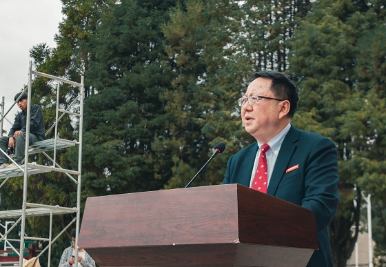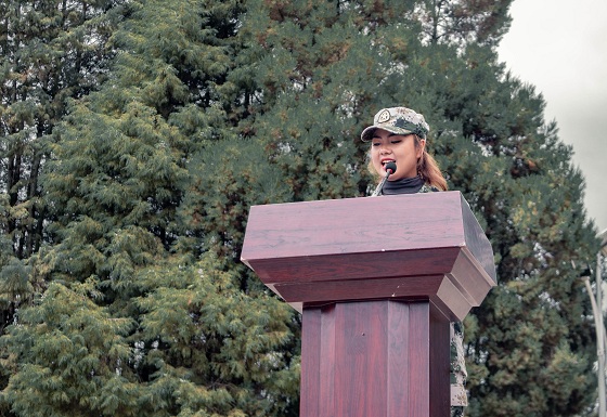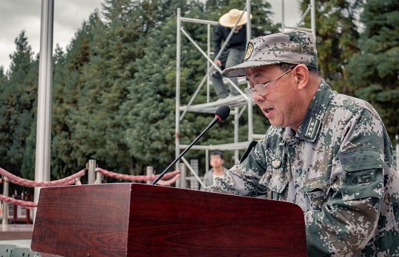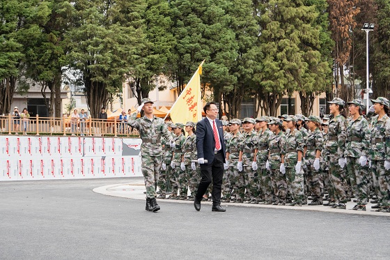 昆明兵站学生军训基地杨锡光上校讲话,对同学们在军训中取得的成绩表示祝贺,并寄语农职学子,做一名勇于担当的青年,敢于亮剑、敢于斗争、敢于吃苦,在生活和学习中积极传播正能量。