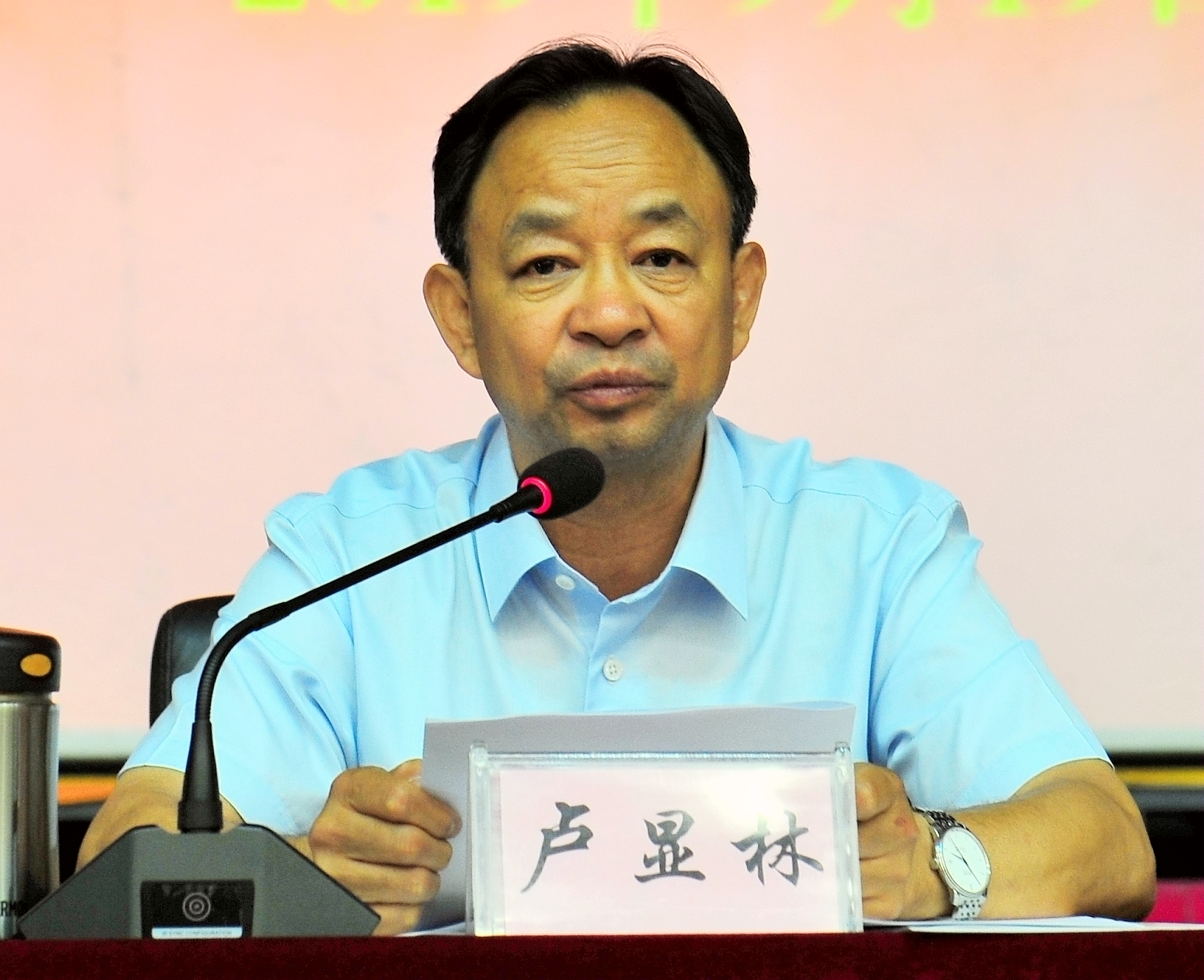 (图四)省委第二十指导组组长卢显林同志作重要指示