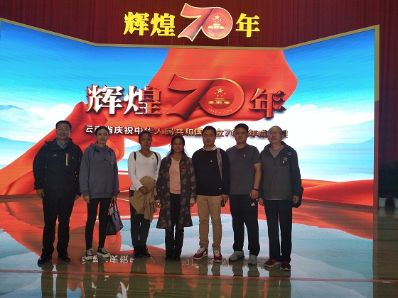 在云南文学艺术馆,参观了“辉煌70年—云南省庆祝中华人民共和国成立70周年成就展。围绕“序厅”“前言”“亲切关怀·温暖云岭”“改天换地启征程”“改革开放谱新篇”“跨越奋进新时代”和“结语”7个部分,以及“亮在彩云南”“美在彩云南”“爱在彩云南”“变在彩云南”等展出专题,通过图片、数据、实物展示,反映出新中国成立70年来,在伟大的中国共产党领导下,云南发生了翻天覆地的变化,取得的辉煌成就。