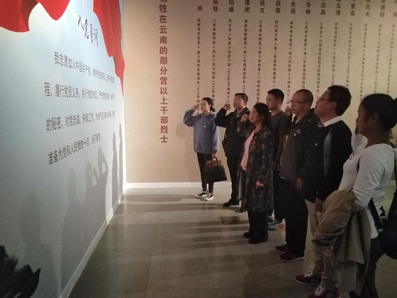 通知中心10月17日下午,机关党总支第二支部开展“不忘初心、牢记使命”主题教育主题党日活动。支部党员来到云南省博物馆,参观热烈庆祝中华人民共和国成立70周年“金沙水拍云崖暖—红军长征过云南特展”,深刻体会革命先烈们不畏牺牲,为广大人民谋幸福的初心和使命,了解红军长征过云南与当地人民群众的鱼水情深,重温入党誓词,传承红色革命精神。