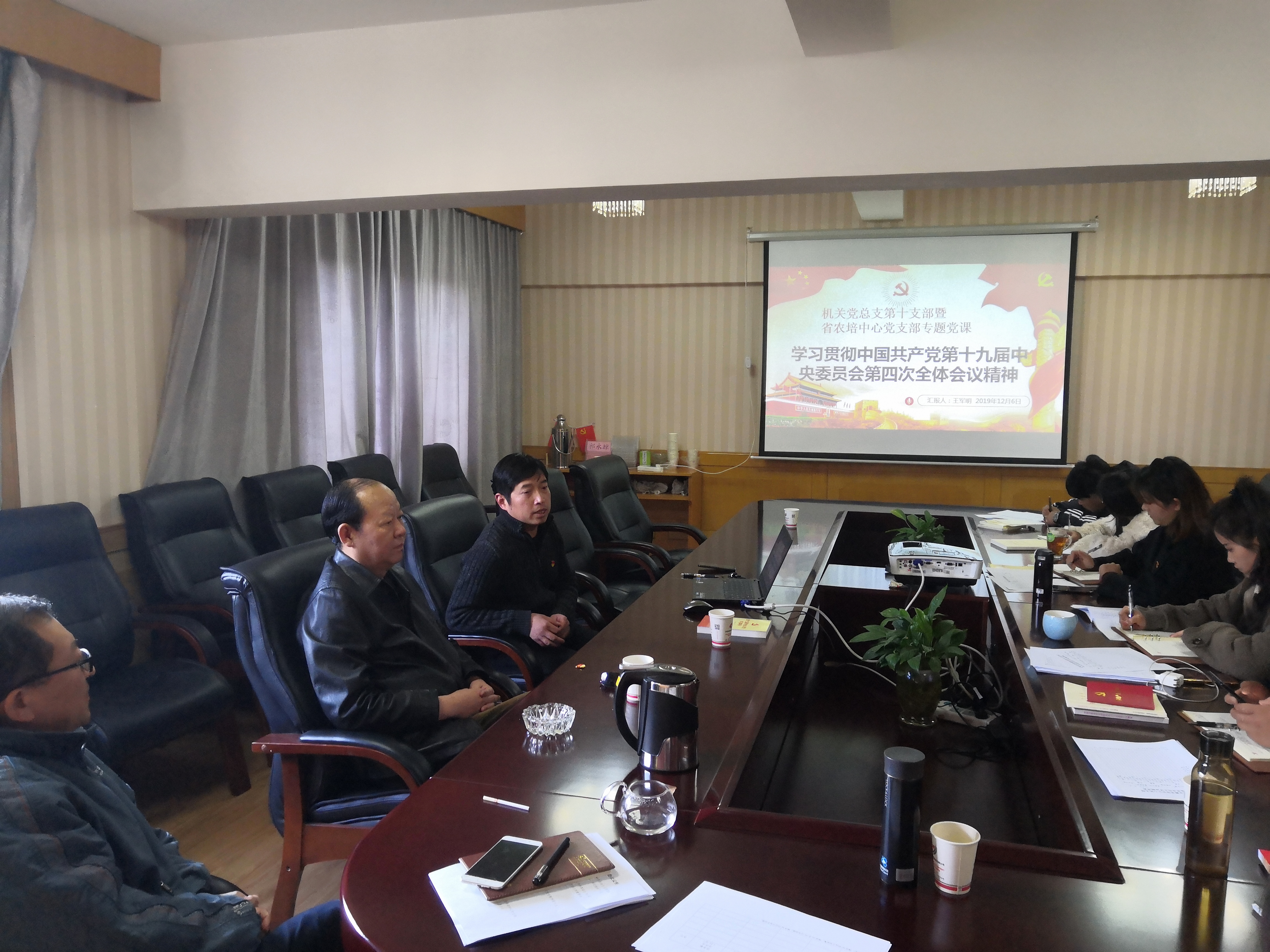 通知中心12月6日下午,机关党总支第十支部在农职培训中心四楼会议室举行支部会议,集体学习贯彻十九届四中全会精神。党委委员、宣传部部长王军明以机关党总支第十支部书记的身份给全体党员上专题党课。机关党总支第十支部和农职培训中心党支部全体党员参加了学习,农职培训中心副主任胡继荣列席会议。