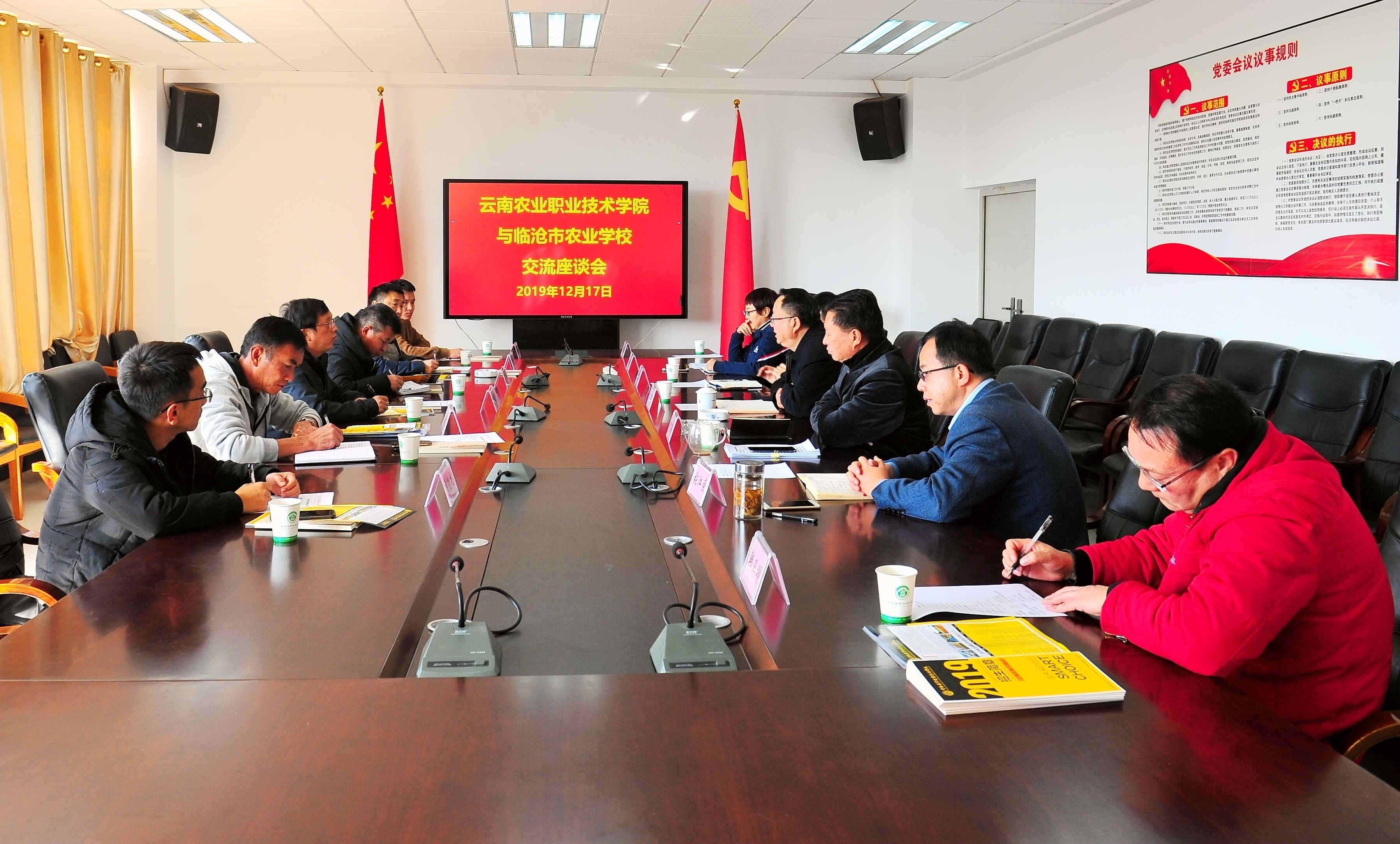 通知中心12月17日上午,临沧市农业学校领导一行到我院交流访问。我院在小哨校区综合楼四楼会议室举行了座谈会,院长文俊、副院长田应华出席座谈会,党院办、教务处负责人及招生就业处有关工作人员参加了交流座谈。座谈会由副院长田应华主持。