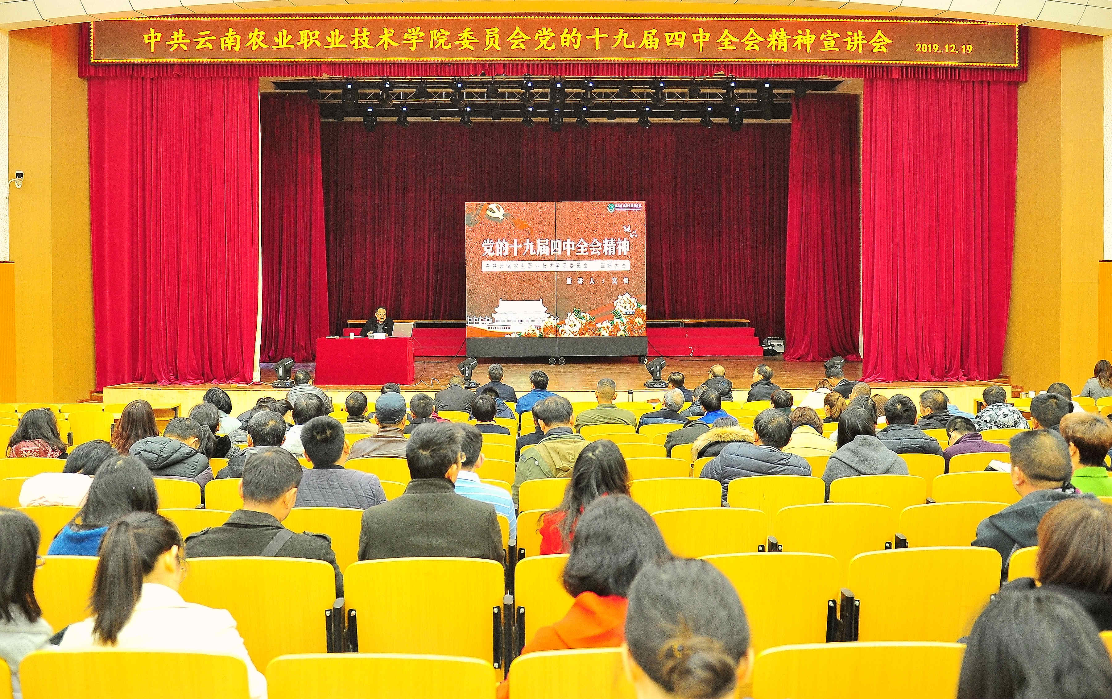 12月19日上午,为深入学习宣传贯彻党的十九届四中全会精神,我院在小哨校区蚕桑礼堂举行党的十九届四中全会精神宣讲会,由江南网页版登录入口官网网址查询 党委书记崔金赋、院长文俊、思想政治理论课教学科研部主任张英组成宣讲团,联合为全体教职工进行了专场宣讲。宣讲会由党委书记崔金赋主持。