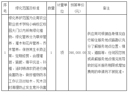 2.3★服务周期:根据《云南省财政厅关于政府采购服务项目合同履行期限相关通知》(云财采[2015]16号)的要求,服务期一采两年(2020-2021),合同一年一签,年度考核达标后确定续签下一年度合同。注:本项目不分标段。各供应商需对以上表格涉及的全部工作内容进行报价,不得缺项漏项,否则按不实质性响应竞争性磋商文件要求、作废标处理。具体要求详见第五章“技术要求”。