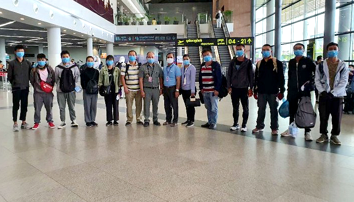 三、克服重重困难,坚定回家信心。一是3月19日,工作组全体成员购买了3月30日从暹粒返回昆明的机票;3月20日,停止园区工作;3月23日,进入收尾工作,工作组成员将身体调整恢复至最佳状态。二是3月30日,暹粒--昆明的直飞航班取消,之后重订的暹粒--金边--昆明和暹粒--金边--广州的航班也陆续被取消,工作组不得不再次调整行程,购买了3月28日金边--广州的机票。三是3月27日晚,工作组成员连夜赶到机场全程留在车上并带好口罩;为保证行车安全,还给驾驶员发了10个口罩并安排旅馆休息。四是3月27日晚,省政府杰辛安副秘书长亲自驾车连夜赶到金边为工作组送行,28日早上带领工作组成员进入机场,并顺利办理了登机手续,平安登上了中午12:00的回国航班,最终工作组全体成员克服重重困难从金边回到广州。