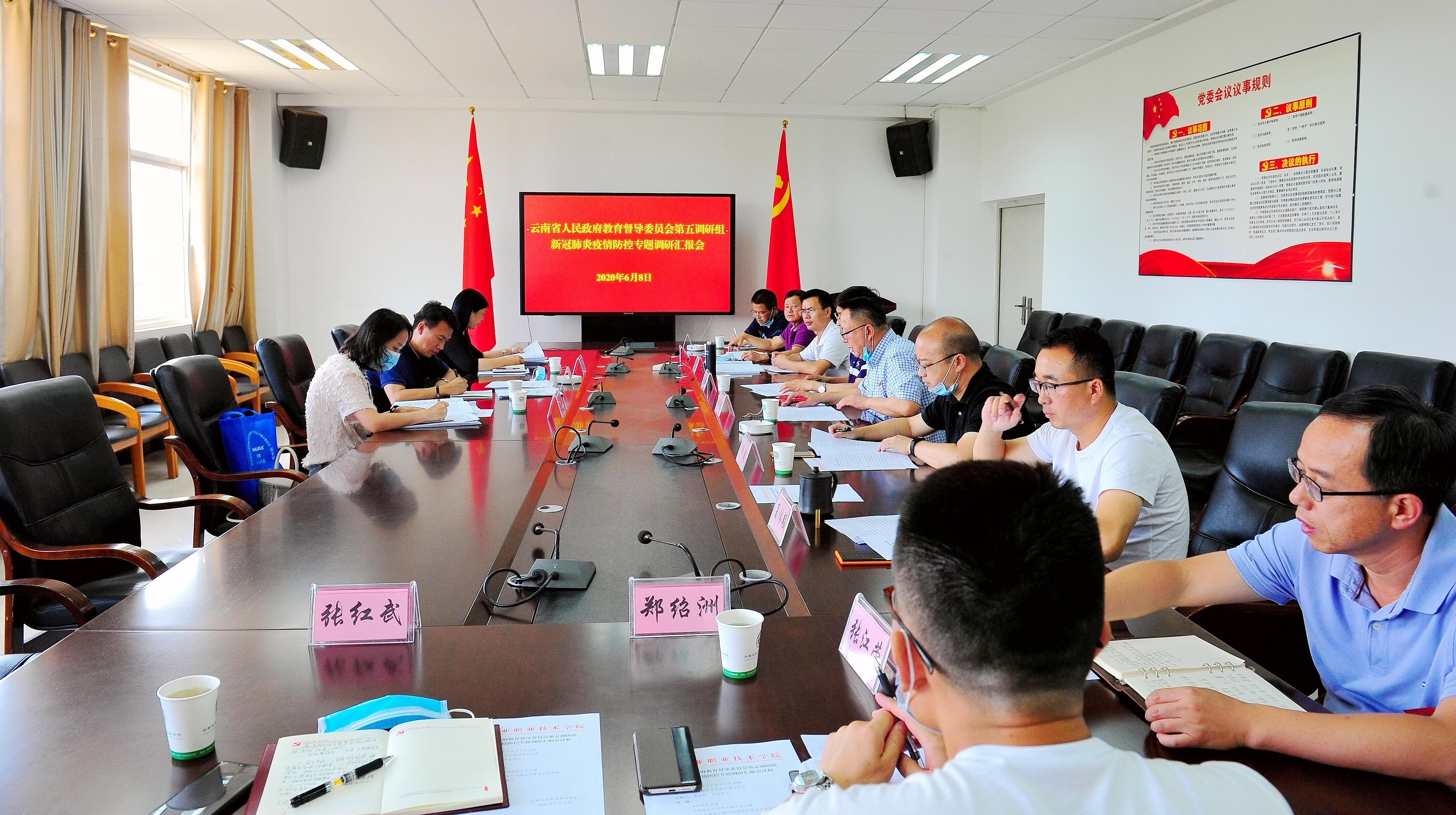 通知中心6月8日下午,省政府教育督导委员会第五调研组组长、云南民族大学后勤处处长许国同志一行三人到我院小哨校区开展新冠肺炎疫情防控专题调研。江南网页版登录入口官网网址查询 在小哨校区四楼会议室进行专题调研汇报,党委书记崔金赋,院长文俊,党委副书记伍学龙,副院长杨波、雷衡参加会议。汇报会由党委书记崔金赋主持。