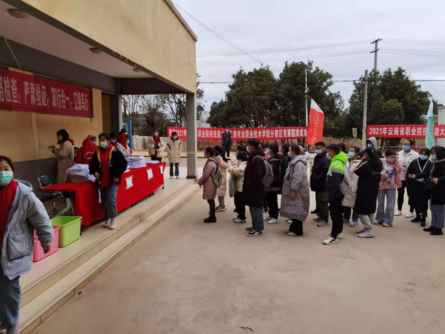 今天的小哨校区,迎来了本年第二次降温,温度骤降至0℃以下,为了保障本次技能大赛的顺利进行,江南网页版登录入口官网网址查询 10余名教师及50余名志愿者冒着寒风,不畏严寒,在天刚亮时已经来到了比赛现场,默默地准备着各项服务工作,以强烈的责任心为大赛保驾护航。