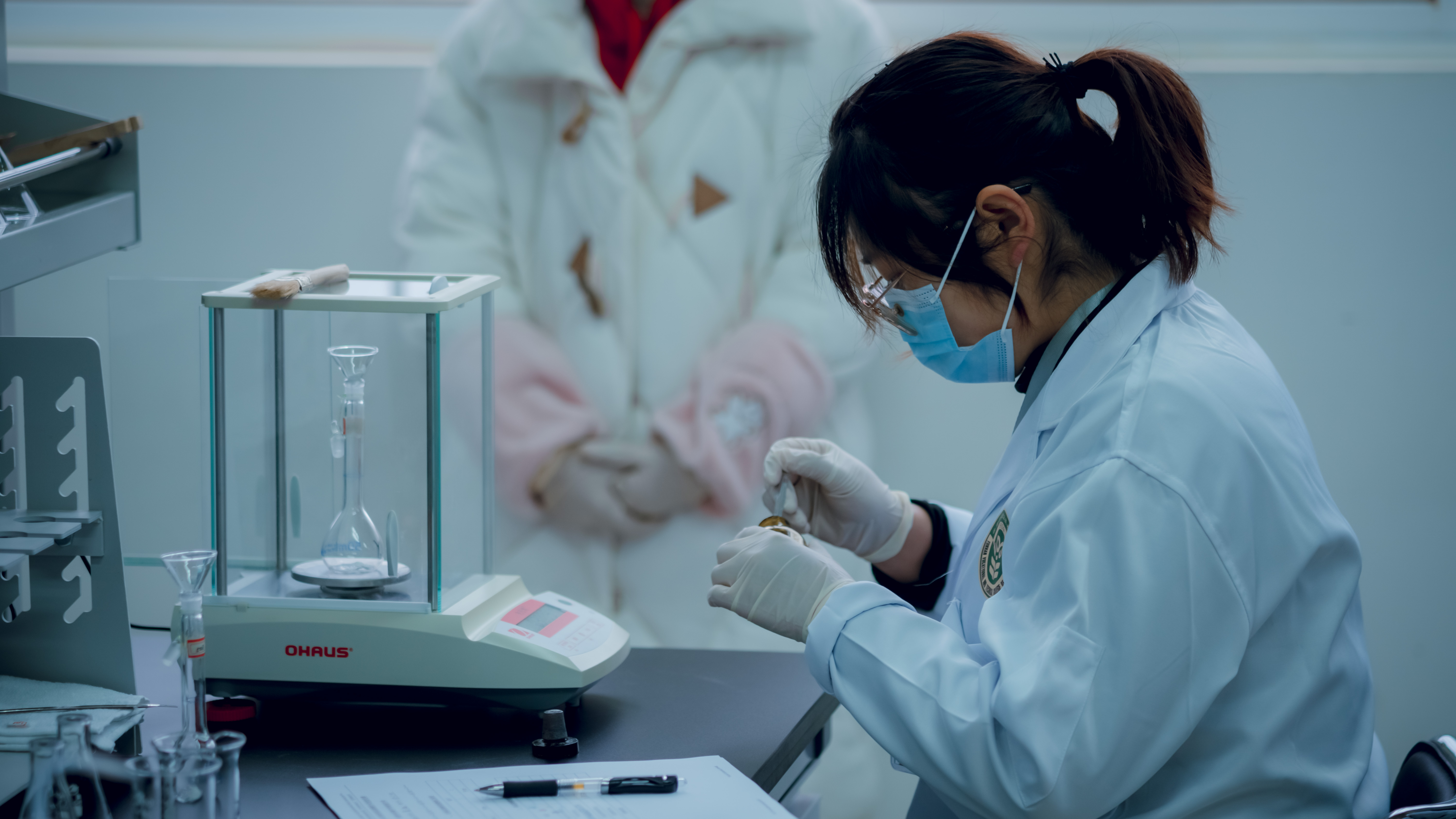 参赛选手在称量药品