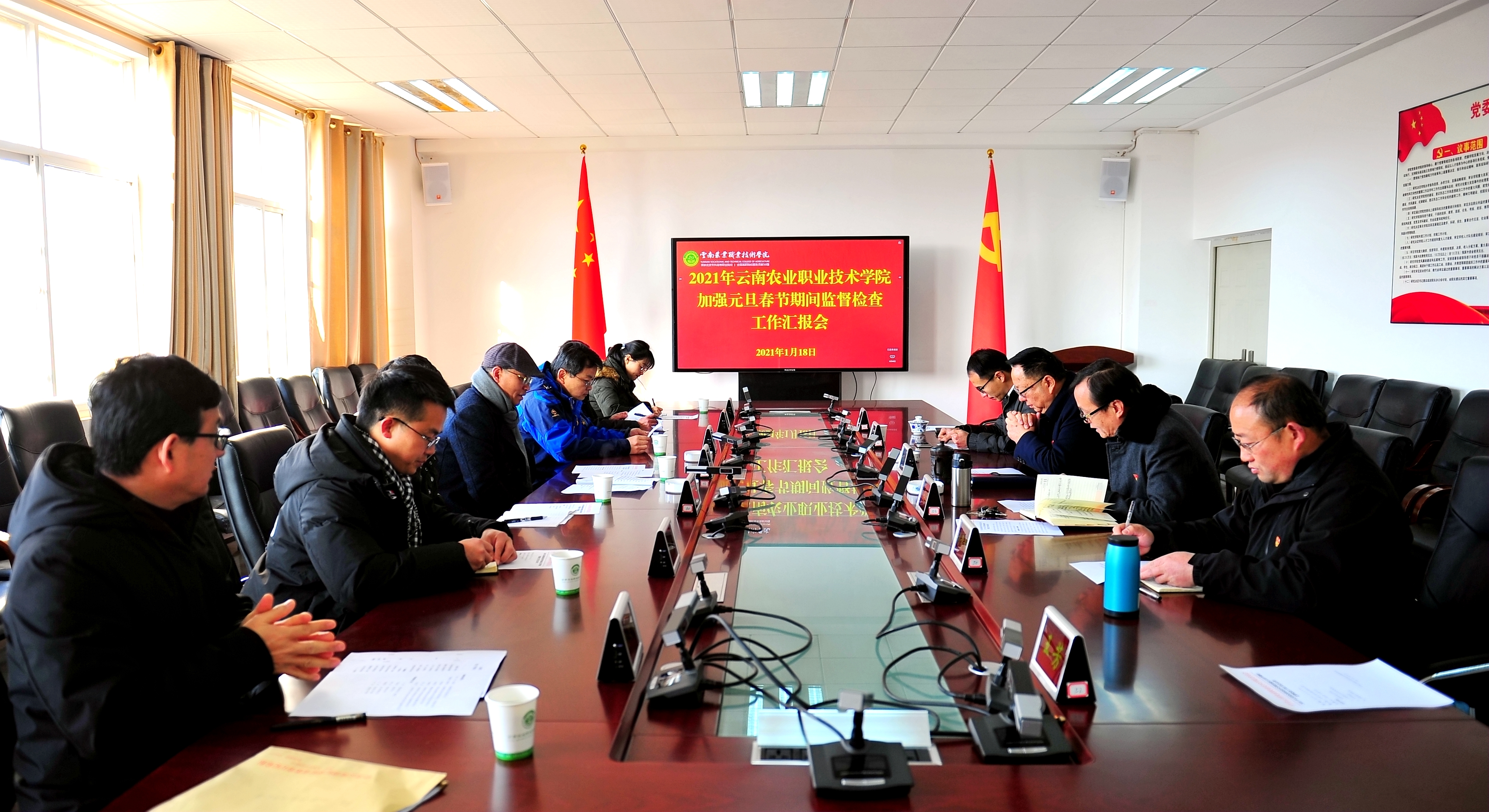 通知中心1月18日,2021年省属学校节日期间纪律作风监督检查第三检查组组长、云南师范大学纪委书记王志刚一行7人到我院开展2021年元旦春节期间纪律作风建设交叉式、推磨式监督检查工作。