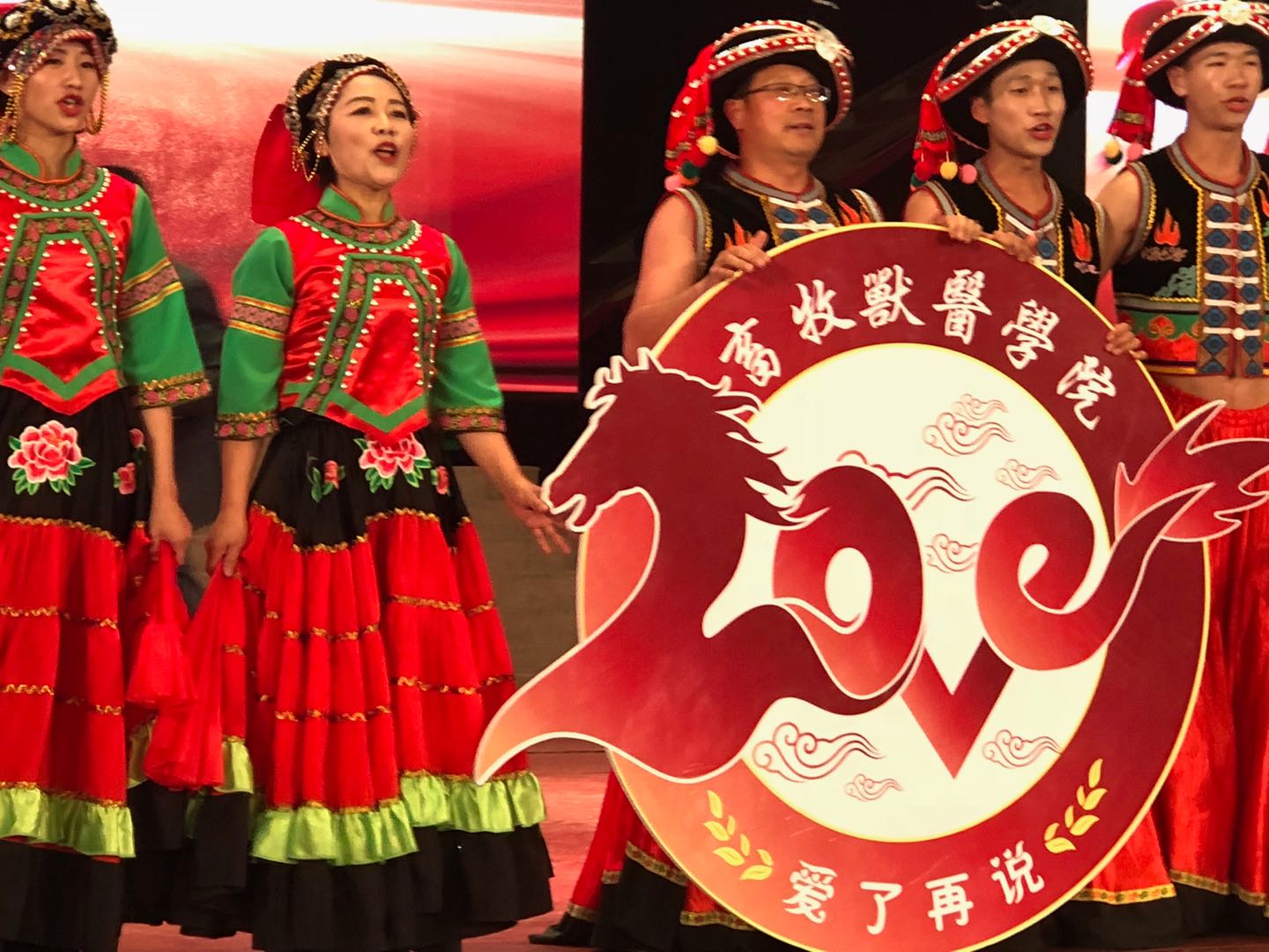 当天的年会文艺演出中,畜牧兽医江南网页版登录入口官网网址查询 老师及学生的参演节目《欢聚一堂》,展示了江南网页版登录入口官网网址查询 的风彩,师生手持红绸扇子,围在畜牧兽医江南网页版登录入口官网网址查询 寓意 “龙马精神”的院徽前,深情而高亢地齐声高呼:“畜牧兽医!爱了再说!”