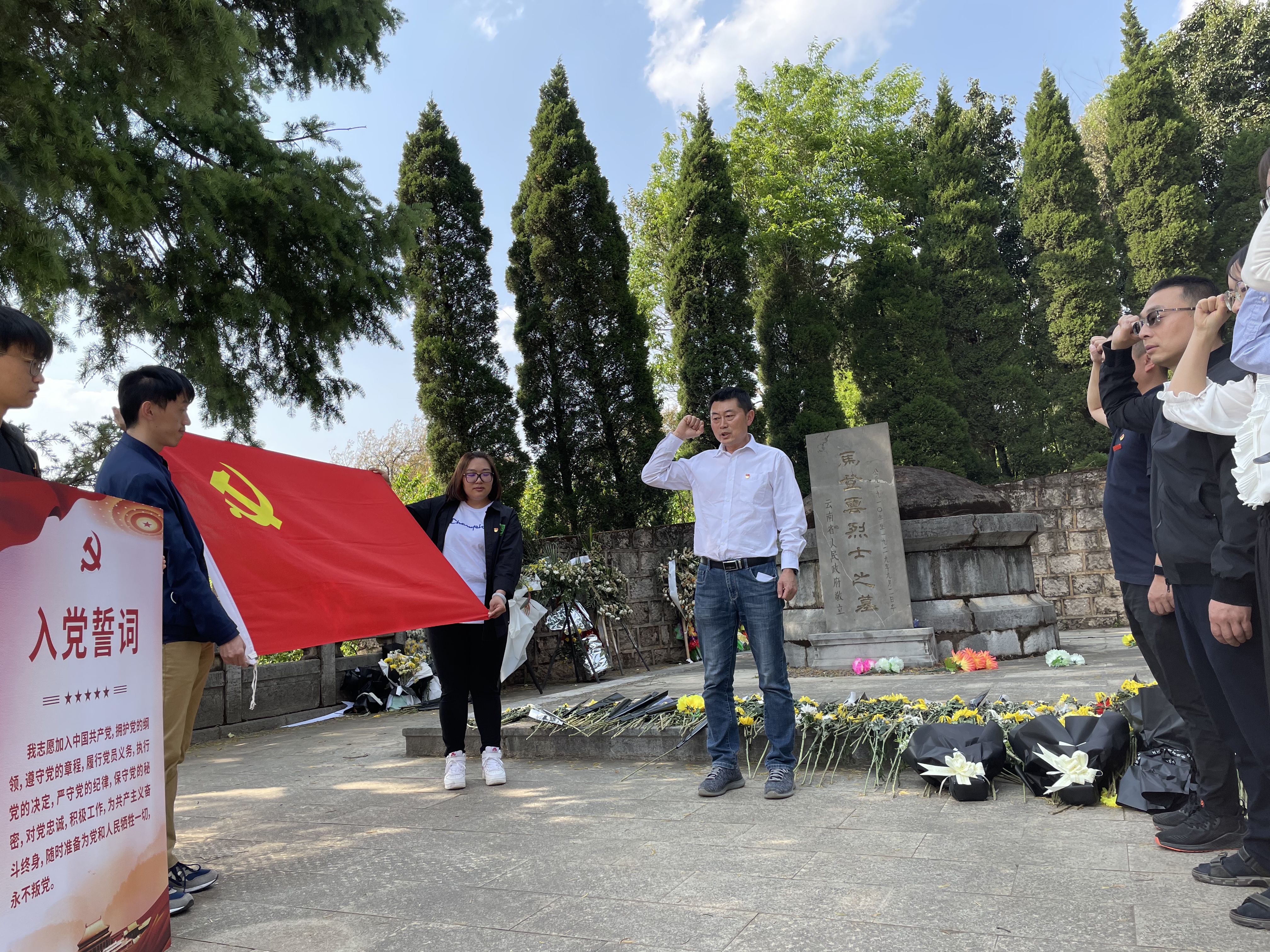 活动伊始,党支部书记李石友同志向大家介绍了王德三、王复生等革命英烈的英勇事迹,并要求支部全体党员结合党史学习教育,积极主动学习云南革命斗争史,在学习党史中牢记初心使命。支部全体党员认真聆听了烈士们壮烈牺牲的英勇事迹,他们是云南人民解放之路的开拓者和奠基人,他们为了民族的解放、国家的独立和人民的幸福,谱写了一篇篇悲壮激越的历史篇章,深刻领会了革命先烈大爱无疆、舍生忘死,为祖国、为人民抛头颅、洒热血的英雄壮志。