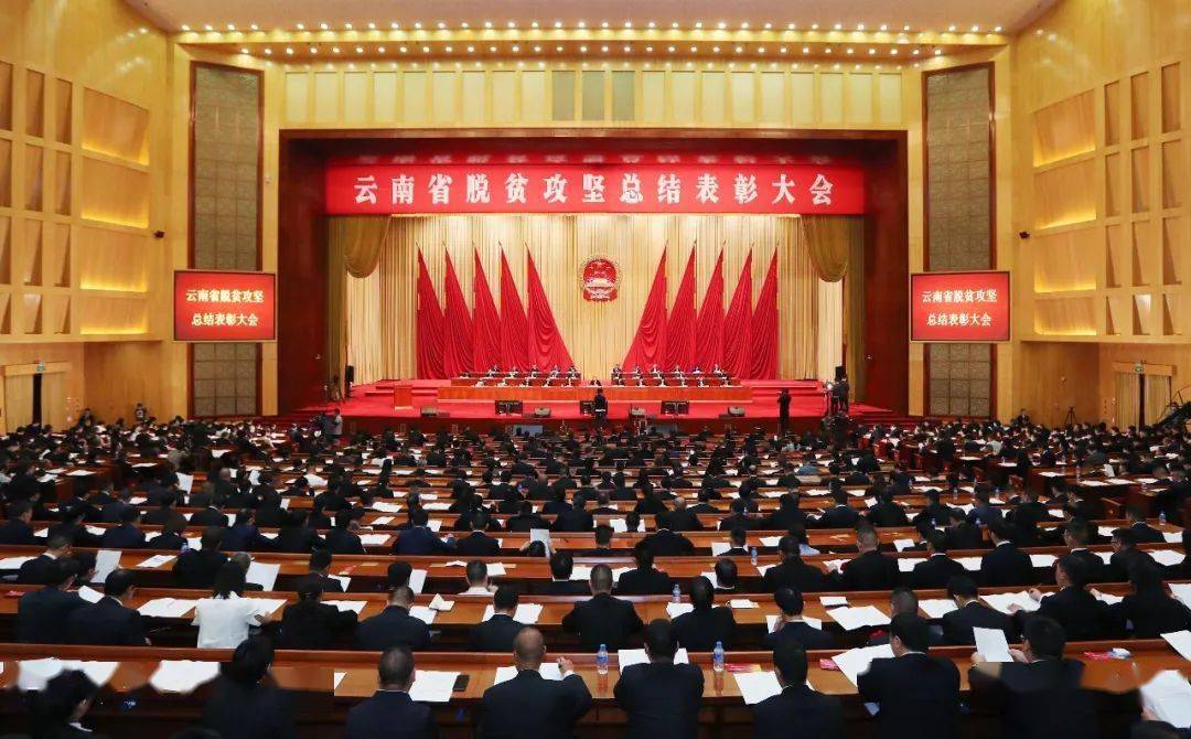 云南省脱贫攻坚总结表彰大会强调,要深入学习贯彻习近平总书记在全国脱贫攻坚总结表彰大会上的重要讲话和考察云南重要讲话精神,大力弘扬伟大脱贫攻坚精神,巩固拓展脱贫攻坚成果,全面推进乡村振兴,朝着全面建设社会主义现代化、实现第二个百年奋斗目标奋勇前进。经过8年持续奋斗,云南全省现行标准下农村贫困人口全部脱贫、88个贫困县全部摘帽、8502个贫困村全部出列,11个“直过民族”和“人口较少民族”实现整体脱贫,如期完成了新时代脱贫攻坚目标任务。困扰云南千百年的绝对贫困问题得到历史性解决。
