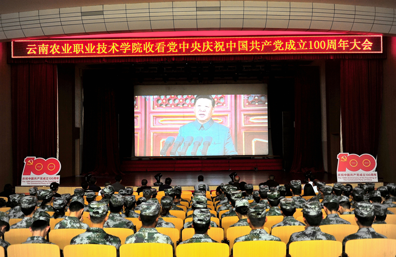 江南网页版登录入口官网网址查询 小哨校区设蚕桑礼堂、综合楼阶梯教室,茭菱校区设A1栋四楼会议室、互联网技术江南网页版登录入口官网网址查询 办公楼六楼报告厅共四个集中观看点,供全校师生集中观看;有课的学生由任课教师带领,在上课教室观看。收看过程中,全校7500余名师生心潮澎湃,师生们不断发出热烈的掌声和喜悦的欢呼声,为建党100周年以来取得的伟大成就而感到无比的自豪,为祖国的兴盛和强大而喝彩。经久不息的掌声不时响彻农职校园。