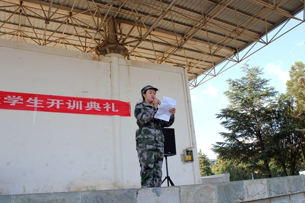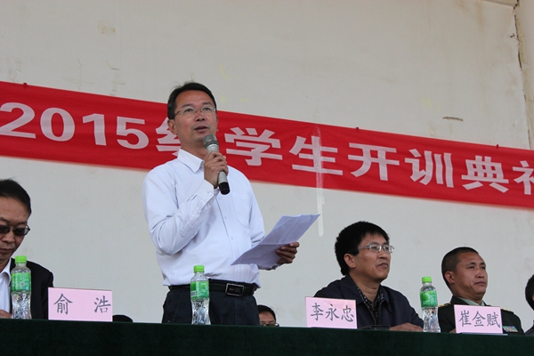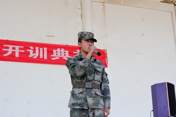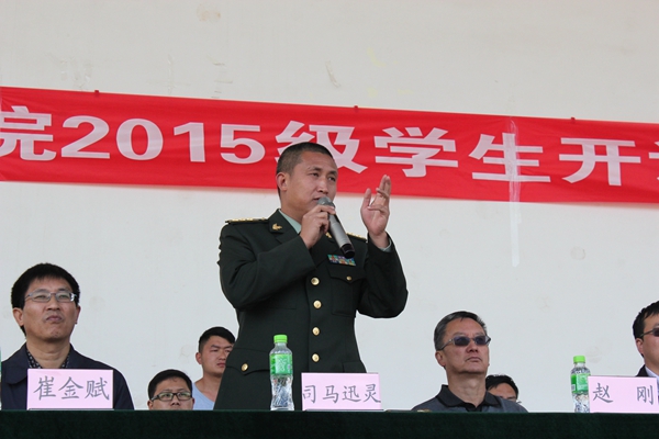 各位领导、教官们表示衷心的感谢,向为军训辛苦工作的老师们和参加训练的同学们表示诚挚的问候!并对2015级的全体参训学生提出了几点要求:一是要求我们全体参训同学居安思危,牢固树立国防意识。二是向人民解放军学习,学习他们吃苦耐劳的优良品德,学习他们忠于党、热爱祖国的高尚情操。三是艰苦训练,努力在军事训练中增长才干。希望同学们们秉承“耕道、养德、理想、开拓”的校训精神,以理想为羽翼,开拓进取,在军训中磨练意志,锻造精神,在绿色的军营里尽情挥洒青春的热情与汗水!