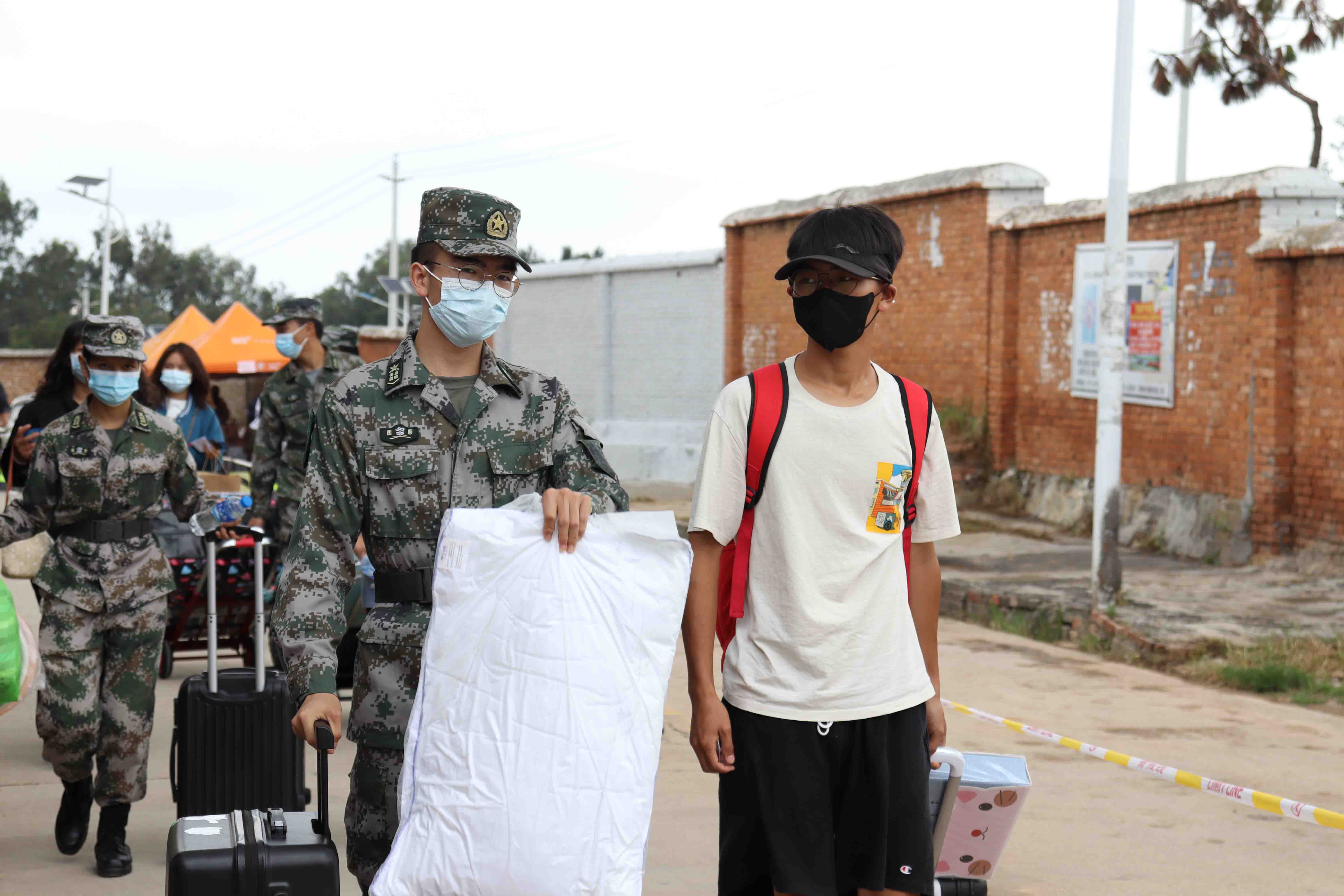 新生报到过程中,家长们不能陪同孩子进入校园。为了让同学们报到更顺畅,学校组织志愿者一早就穿上颜色鲜艳的马甲,佩戴工作牌,为2021级新生提供一对一服务,全力协助新生入校。“同学,麻烦来这边间隔1米排队,戴好口罩。”“请打开手机展示健康码和行程码,出示核酸检测证明,测量体温。”各个岗位的工作人员和志愿者用一张张热情的笑脸、一句句亲切的问候、一项项贴心的服务,让来自四面八方的莘莘学子感受到了家的温暖。