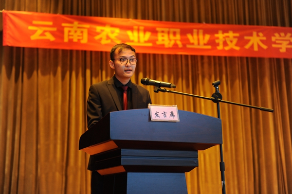 刘玉翔毕业生代表发言。他在发言中回顾自己和同学的大学点滴,表达了临别前的不舍,代表2013级全体毕业生感谢学校领导和老师们的关心、帮助与谆谆教导。并表示,离开校园,不忘曾经结下的友情,不忘老师的言传身教,不忘梦想。将更加勇敢、坚强、成熟地面对未来!做拥有智慧并富有激情的人,胸怀大志并脚踏实地的人,德才兼备并勇于创新的人,富有责任并敢挑重担的人!
